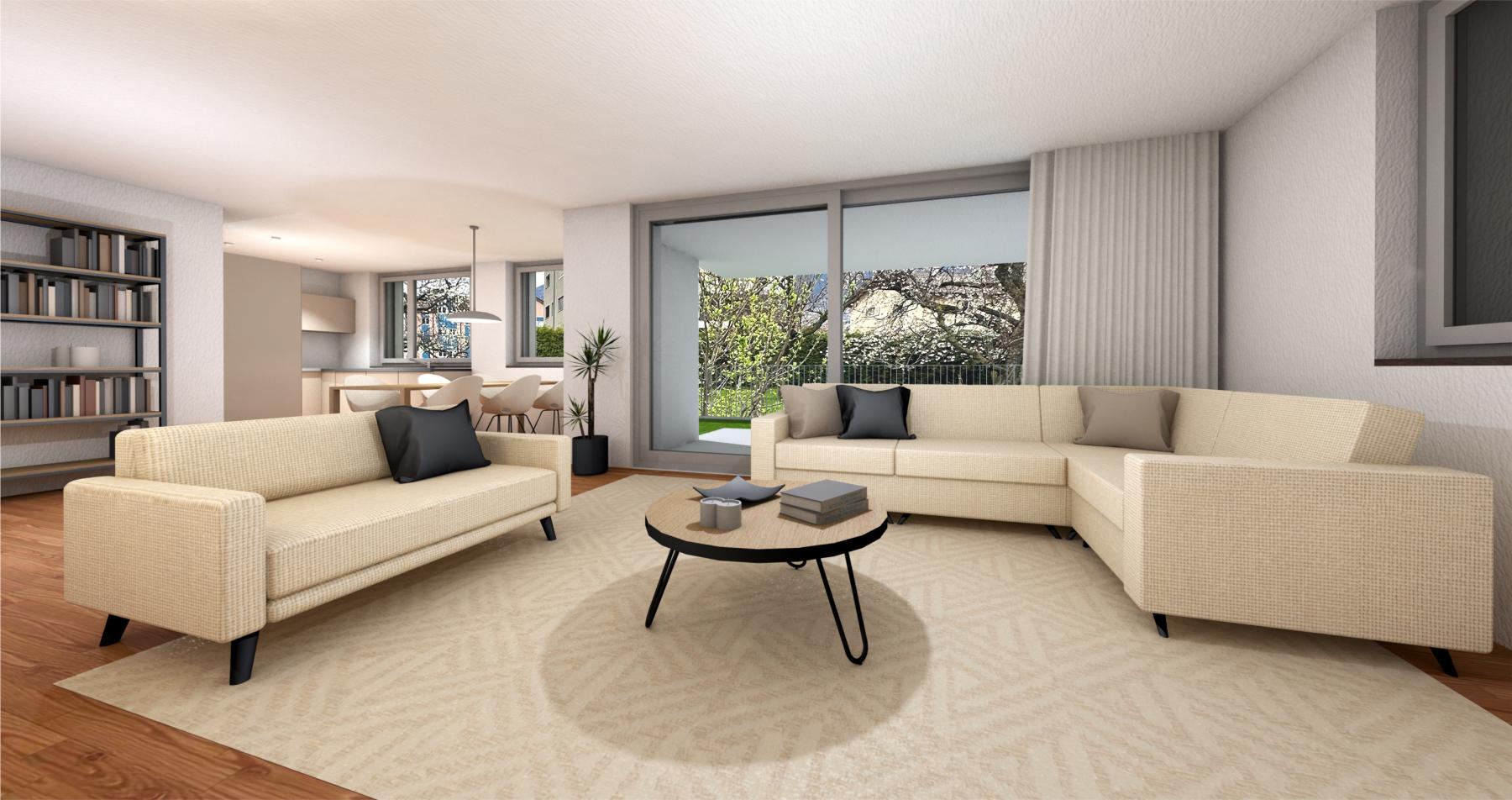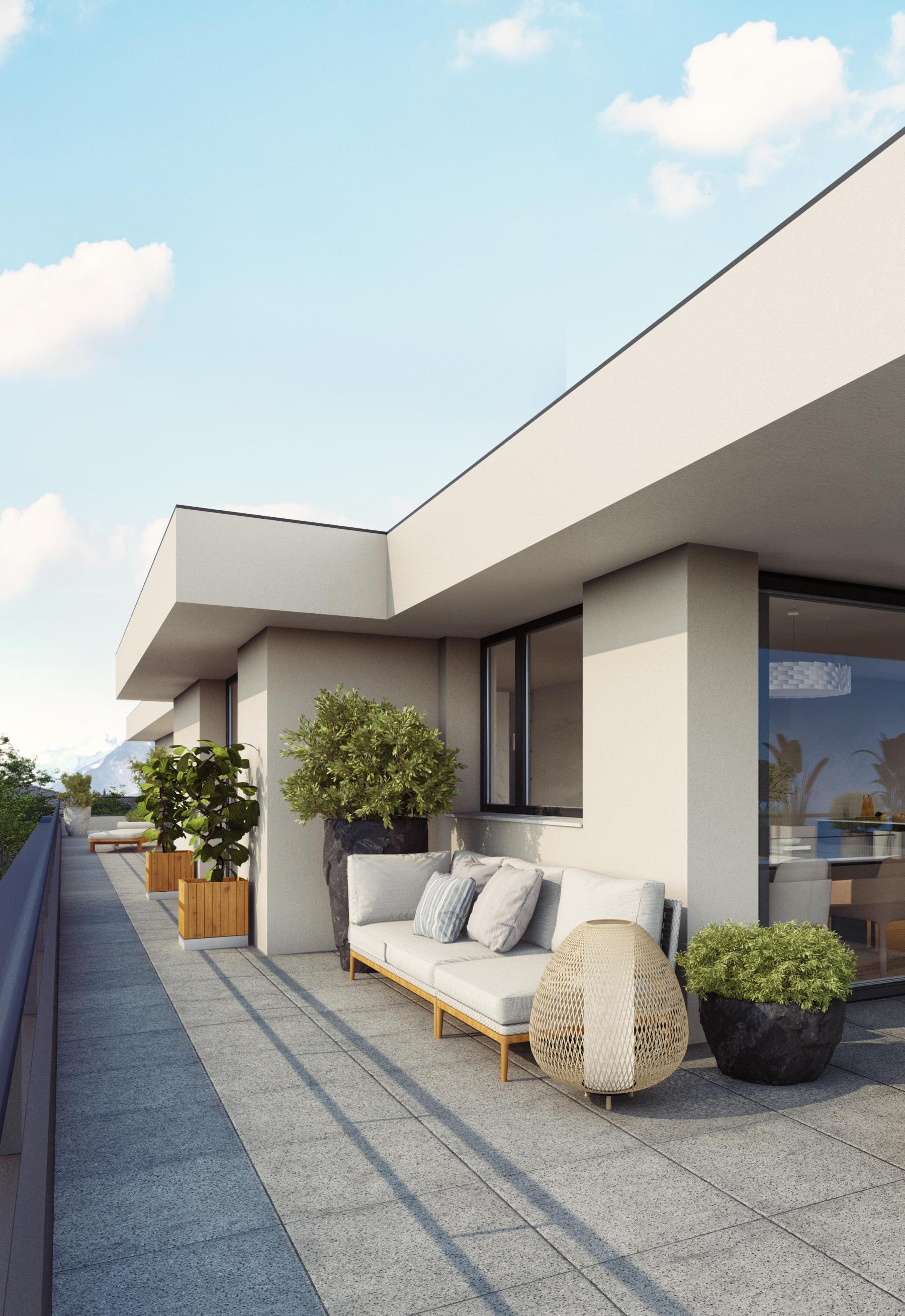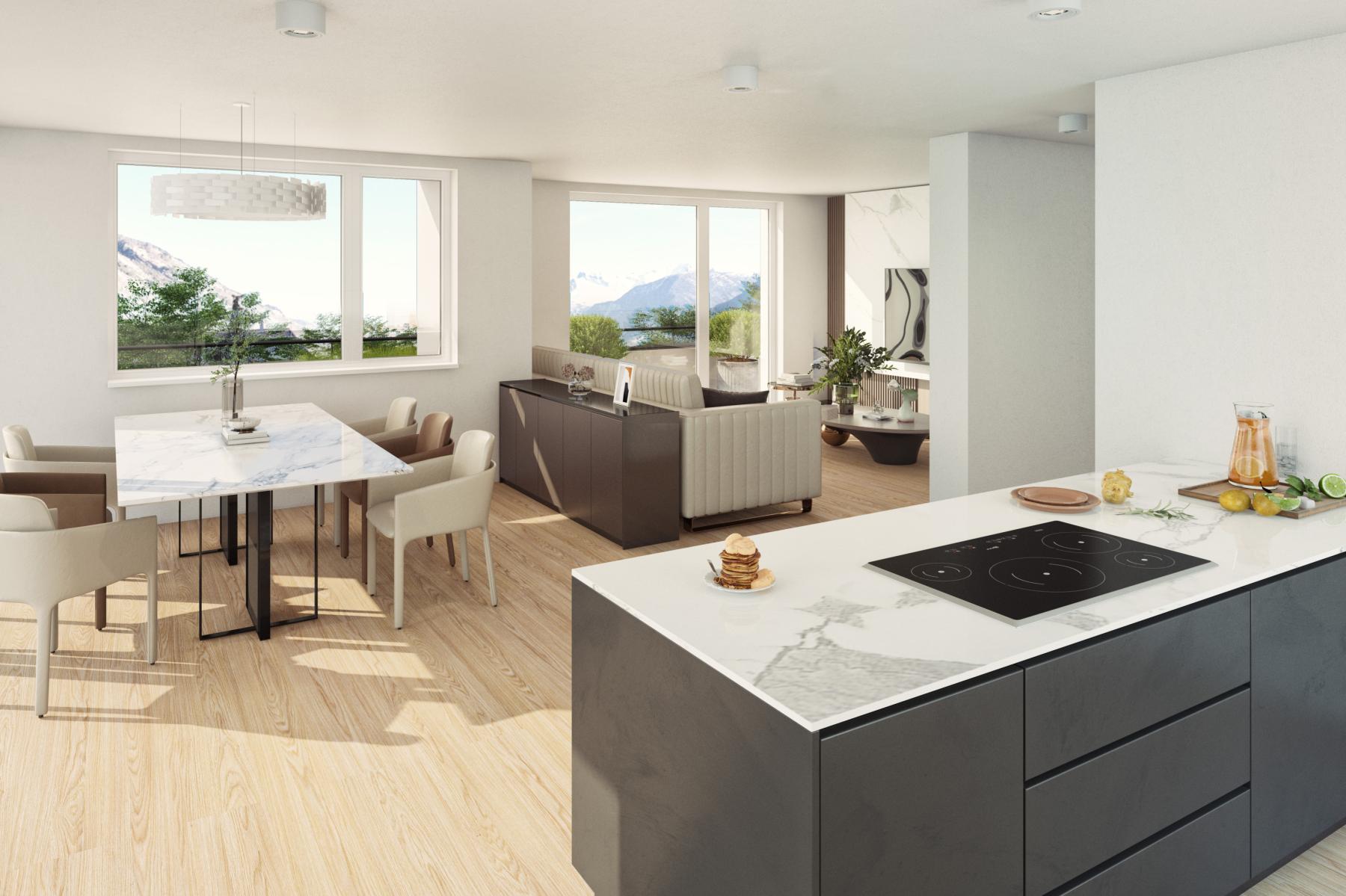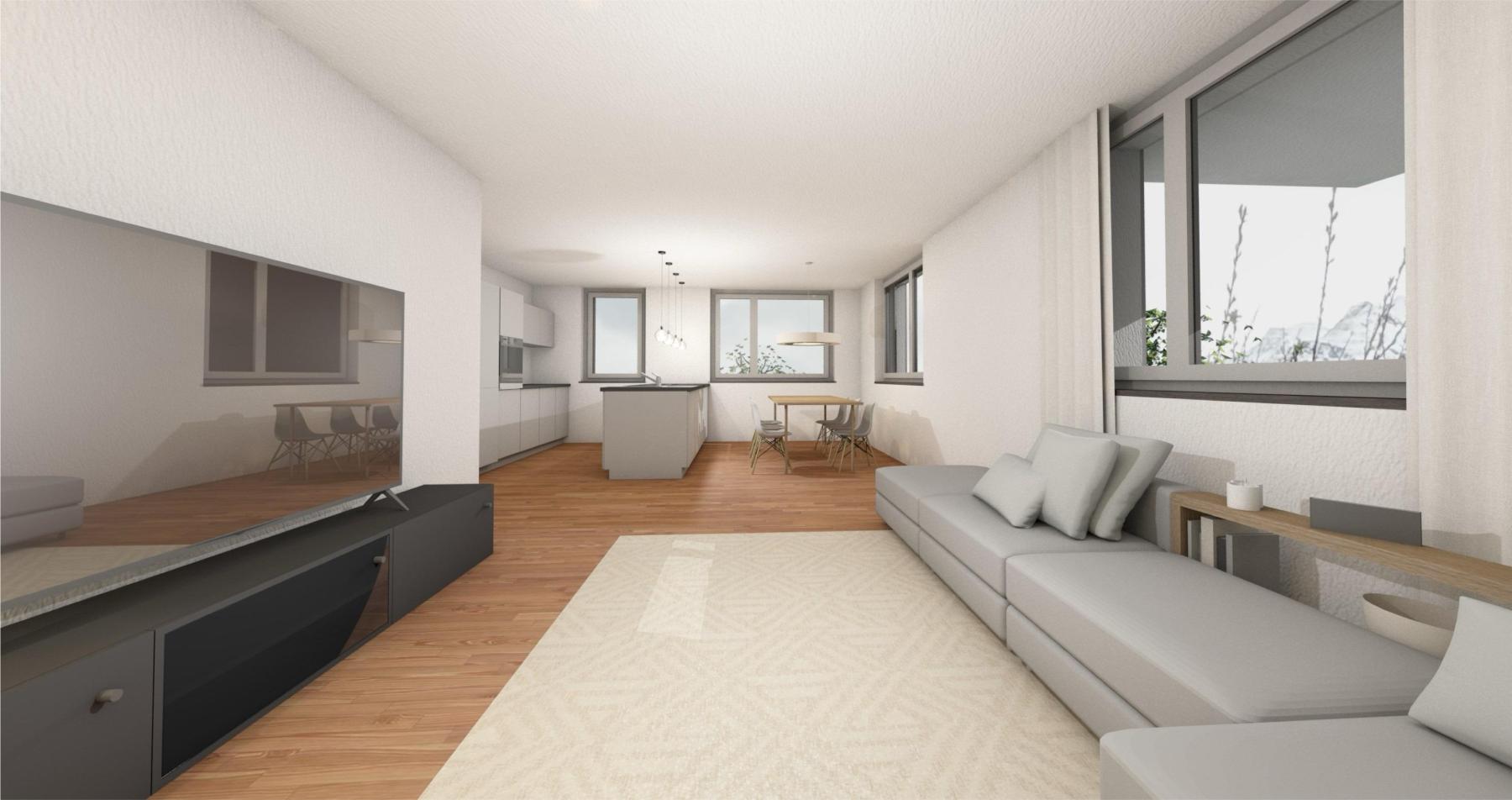 Geniessen Sie den herrlichen Ausblick von der Loggia oder von der grosszügigen Terrasse. Der offene und grosszügige Grundriss bietet Ihnen ein traumhaftes Ambiente zum Wohlfühlen und Entspannen. Wir folgen dem Wandel der Zeit und bauen mit Photovoltaik.